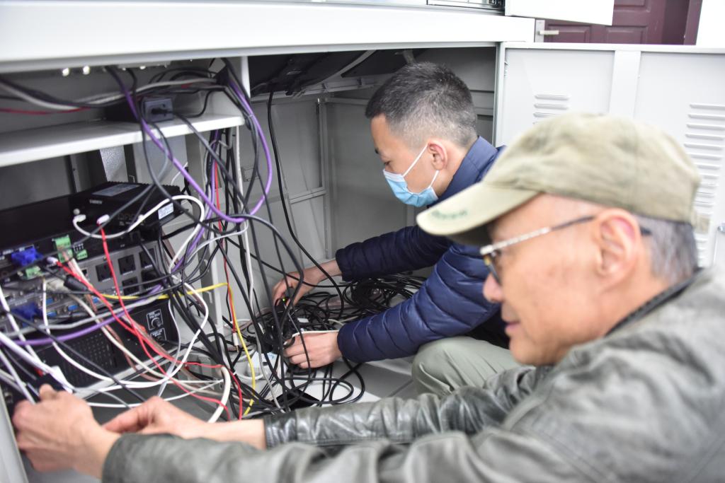 上課前,網絡與信息化中心工作人員對教學樓多媒體教室進行巡查和檢修,保障所有多媒體教室教學設備正常運行,確保教學工作井然有序進行。圖為工作人員正在檢查教學設備。