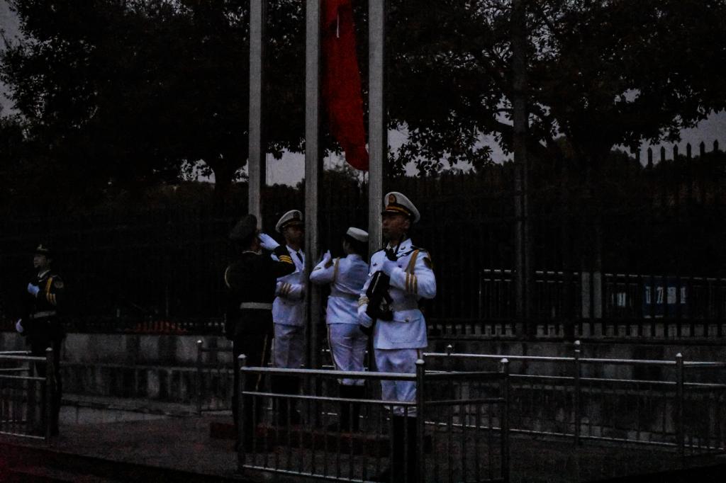 早上七點,國旗護衛隊的同學們邁著整齊的步伐來到一期運動場舉行升旗儀式,嘹亮的《義勇軍進行曲》打破了校園的靜謐,同學們也在國歌聲中開啟了美好的一天。圖為升國旗現場。