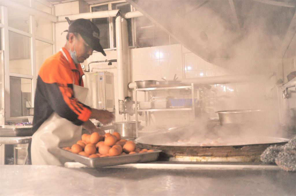 還不到五點,食堂王師傅就已經起床。開學后,為同學們準備可口的一日三餐是王師傅和同事們的工作日常,也是后勤人共同的追求。圖為食堂師傅正在煮雞蛋。
