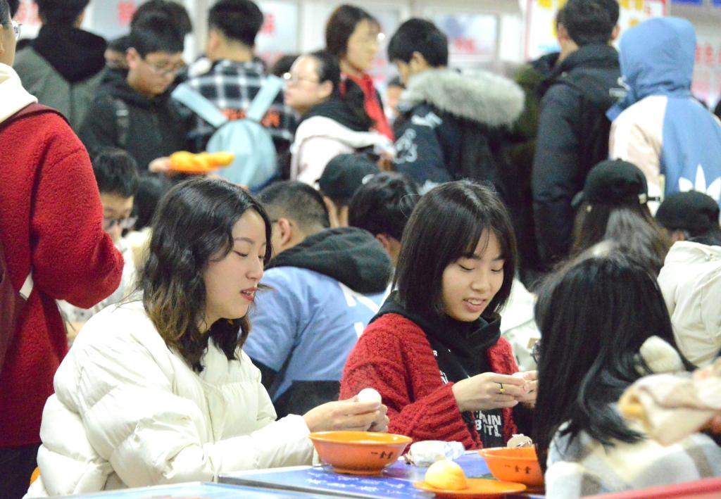 早餐是金,一天的能量從早餐開始。稀飯、油條、豆漿、小面……一頓美好的早餐開啟了同學們新學期的第一天。圖為同學們正在吃早飯。