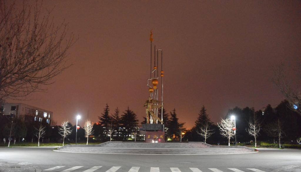 追夢新時代,奮斗正當時。石大人以奮斗的姿態迎接新光景,投入新工作,開啟新生活,奮進新時代,筑夢新未來。圖為夜晚,成都校區新落成的石油魂雕塑在風中佇立。(李陽 皮璟璇 劉仲銘 邱子懿 孟新儒 楊旭 李若藍)