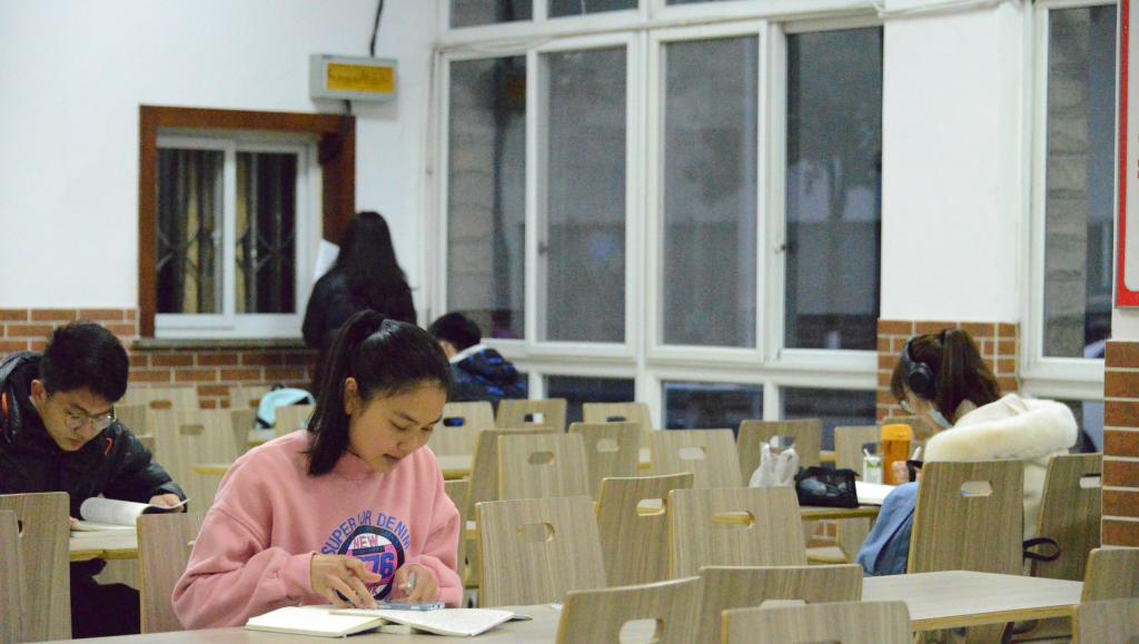 奮斗的青春最美麗。開學首日,同學們早早起床,來到食堂晨讀、預習,用奮斗詮釋著青春的意義。圖為同學們在食堂學習。