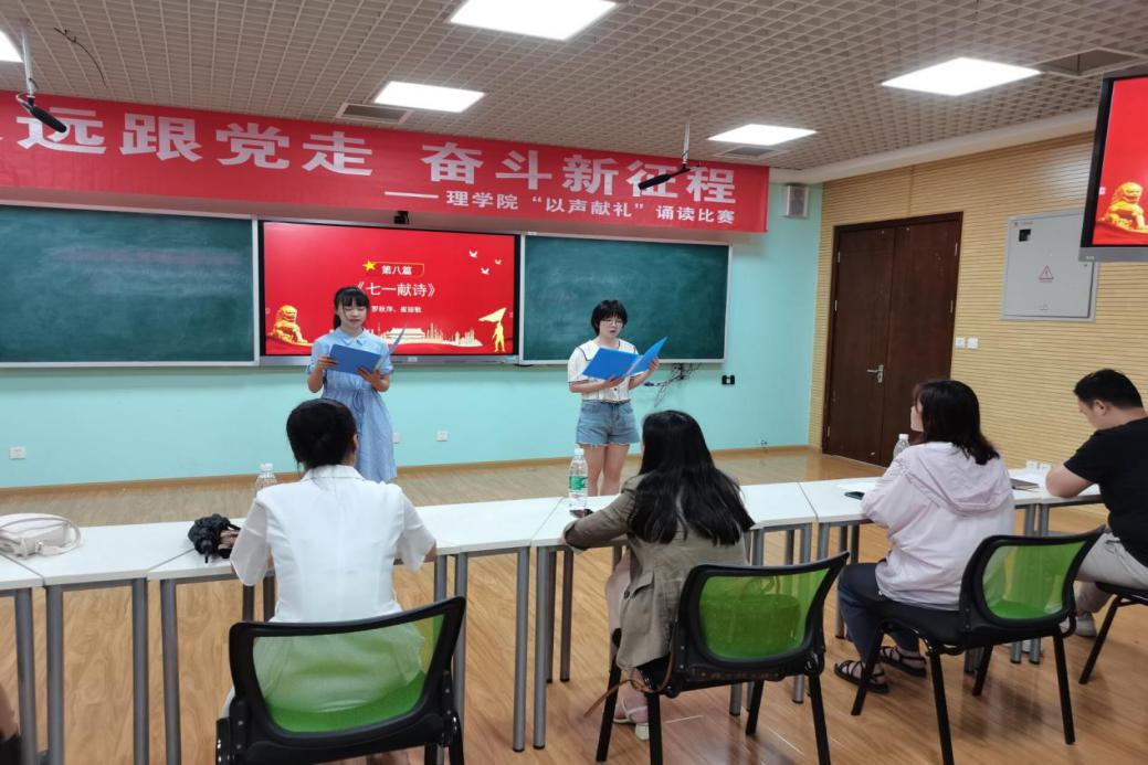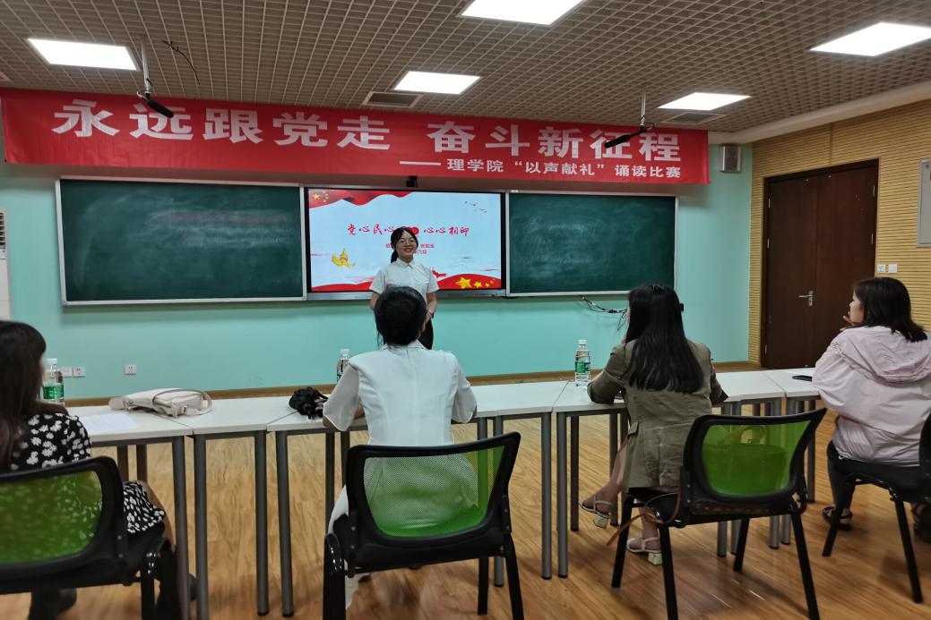 誦紅色經典,憶百年征程,為向中國共產黨百年華誕獻禮,6月16日19時,理學院“以聲獻禮”誦讀比賽決賽在明理樓C1208教室舉行。理學院副院長李玲娜教授、大學數學教研室主任陳亞麗教授、輔導員和晉、李夢以及藝術院學生許譯丹擔任評委,2020級應用數學專業學生蘭鑫宇擔任主持人。