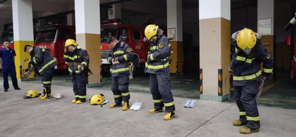 在實戰演練中,老師們不但領略了消防官兵20秒著裝、45秒出發的驚人速度,還親身體驗了消防著裝、消防器具演練,并進行了干粉滅火器滅火實戰。