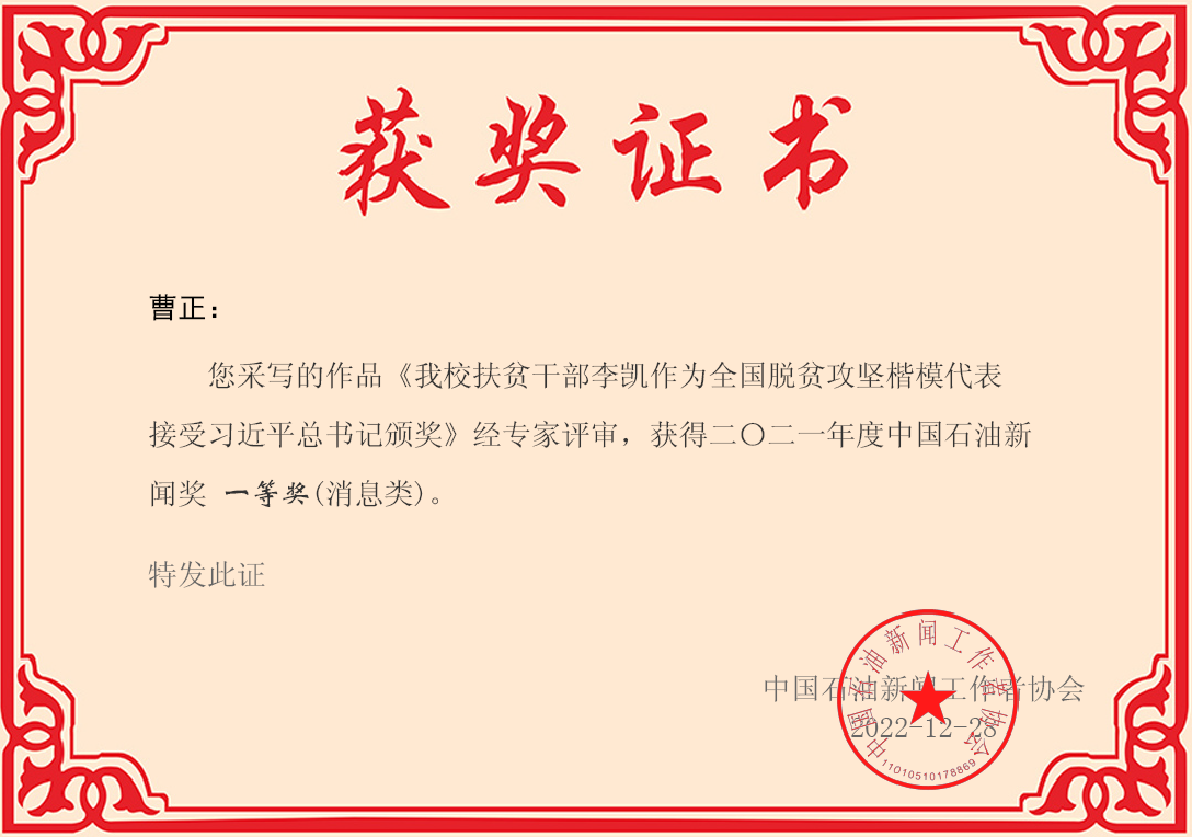 近日,中國石油新聞工作者協會公布了2021年度中國石油新聞獎評選結果,我校報送的4件校報作品全部獲獎,其中2件作品獲得一等獎,2件作品分獲二、三等獎。