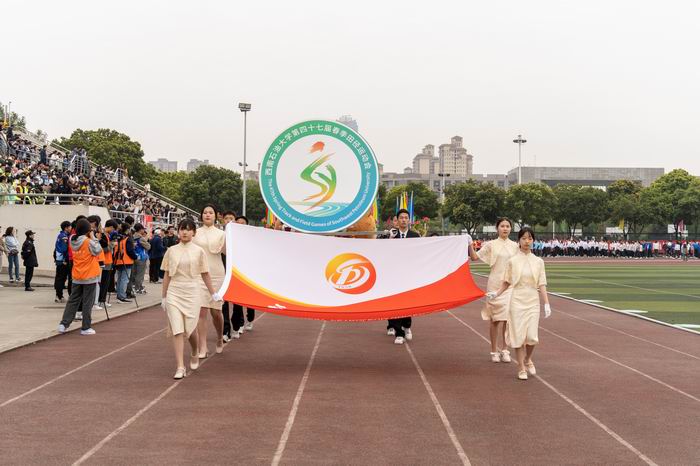 彩旗方隊、運動員代表方隊依次入場。這是展現各運動隊風采的時刻,服裝、隊列、步伐、表情以及行進中的表演,無不昭示著西南石大人自信、開朗、昂揚向上的精神風貌。