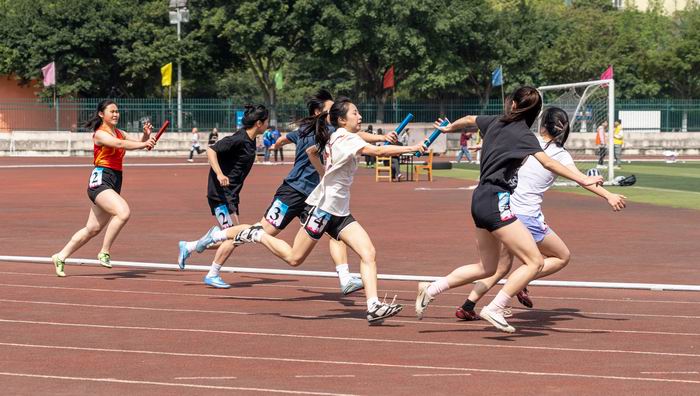 在兩天的賽程中,各項目精彩紛呈。男子女子百米大戰,比爆發力;800米1500米長跑,比速度,也比耐力;4×100接力,比個人競速,還要比配合;跳遠、跳高,姿勢要帥,更要比距離、高度。比賽中,運動員英姿颯爽,拉拉隊喊聲震天,志愿者不辭辛苦,裁判員公正執裁。大家齊努力,為運動會增光添彩。
