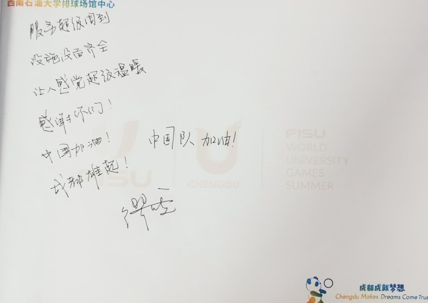 訓練結束,女排隊員們紛紛點贊我校熱情周到的服務,并現場簽名寫下“服務超級周到,設施設備齊全”“讓人感覺超級溫暖”“感謝你們”等話語表達感謝。