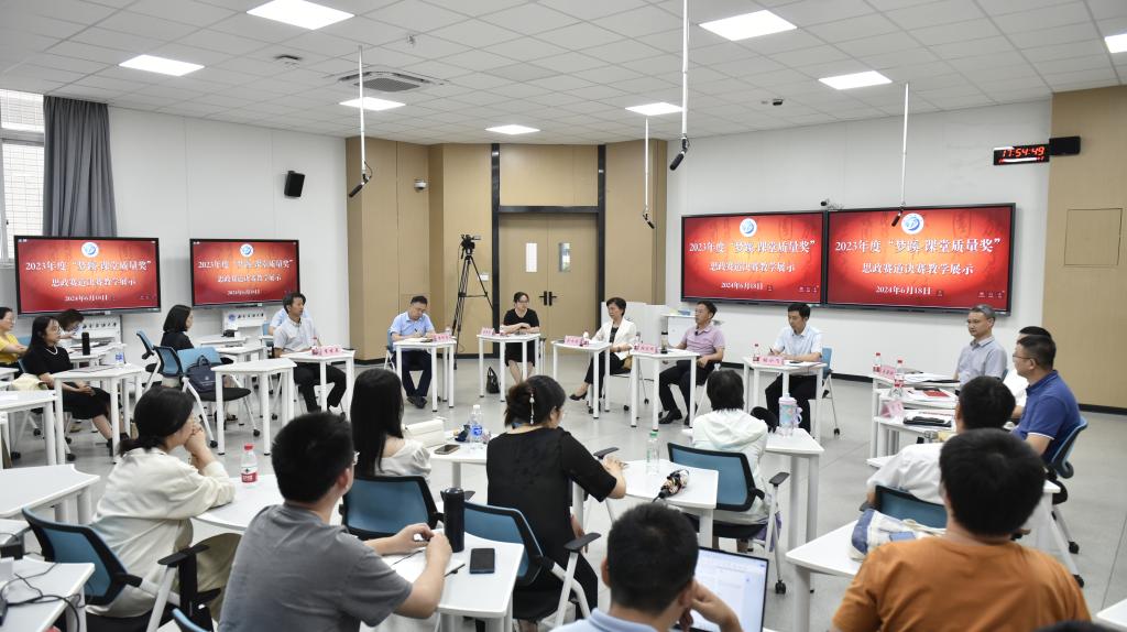 督導專家,組織部、教務處、教評處主要負責人擔任評委。黨政辦(校地合作辦)、馬克思主義學院班子成員、全體思政課授課教師參加活動,600余人次通過飛書直播進行線上觀摩。