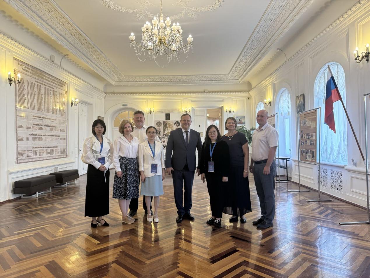 俄語專業(yè)教研室黨支部書記魏夢瑩表示,國之交在民相親,“長江-伏爾加河”中俄青年論壇不僅增進了中俄兩國青年的彼此了解,還潤物細無聲地傳播了兩國優(yōu)秀文化,使得兩國人民得以直觀地認知彼此,欣賞彼此,融合彼此。俄語專業(yè)教研室主任宮磊在接受俄方媒體采訪時表示,青年是兩國的未來與希望,我們愿借本次出訪之機,為兩國青年交流略盡綿力,并以此服務(wù)“一帶一路”倡議,在落實相關(guān)項目行穩(wěn)致遠之際,為構(gòu)建人類命運共同體貢獻新時代中國青年的智慧與力量。