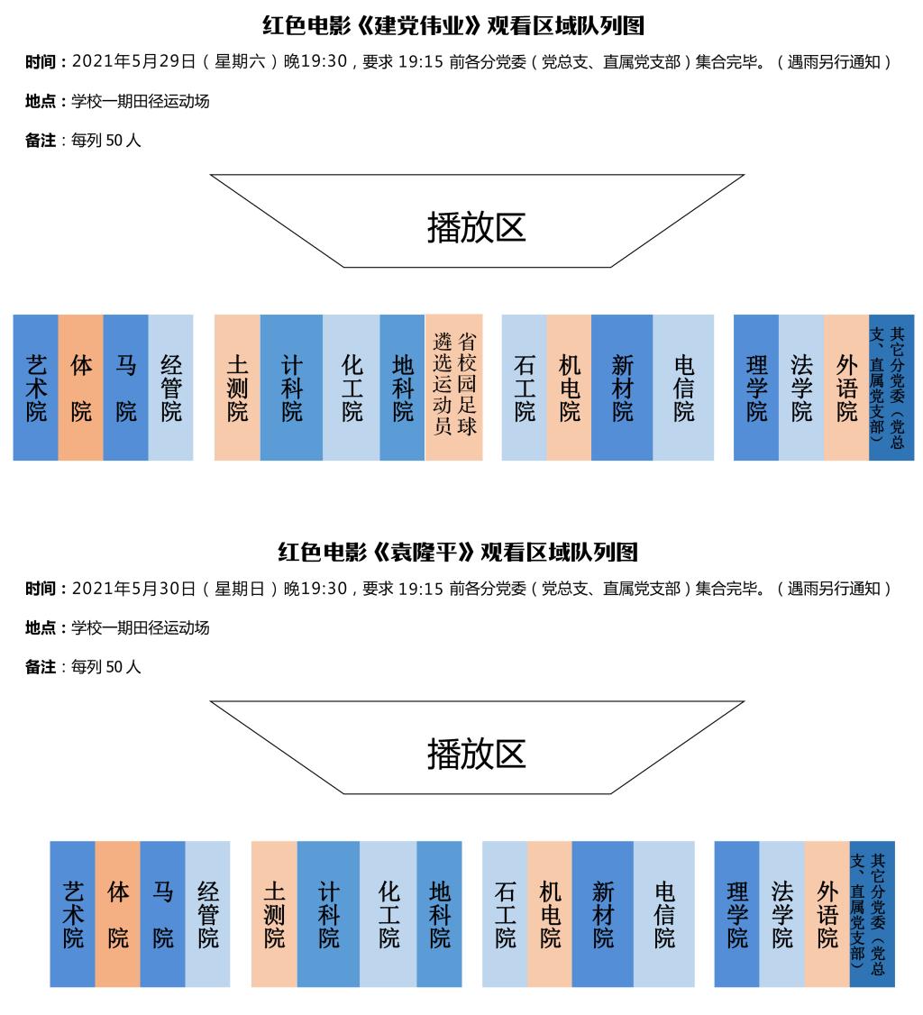 2.每場(chǎng)觀影,各學(xué)院分黨委(黨總支)至少組織100名師生,其余分黨委(黨總支、直屬黨支部)至少組織10人集中觀影。