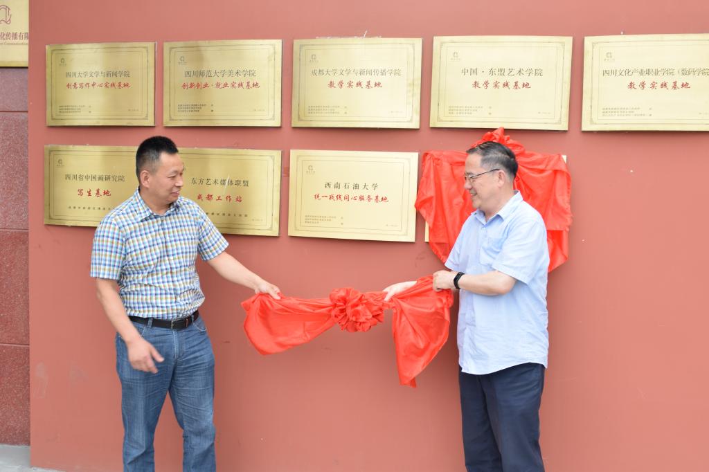 專家團團長陳平與清流鎮鎮長李軍為“西南石油大學統一戰線同心服務基地”揭牌