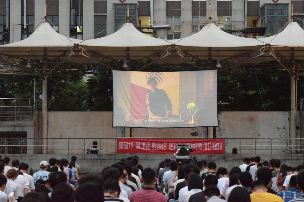 為慶祝新中國成立70周年,激發師生的愛國情、強國志、報國行。19日晚,學校組織部、宣傳部與全國校園電影院線聯合主辦的黨史革命史主題教育巡影活動在二期足球場舉行。