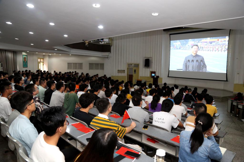 10月1日上午10時整,舉國關(guān)注、舉世矚目的慶祝中華人民共和國成立70周年大會、閱兵式和群眾游行在北京隆重舉行,成都、南充兩校區(qū)組織廣大師生在博學(xué)樓廣場、多媒體教室、圖書館學(xué)術(shù)報告廳和南充校區(qū)多功能學(xué)術(shù)報告廳等16個集中收看點收看了電視直播,更多師生分別在住宅、公寓收看;一些遠在海外留學(xué)、在外實習(xí)的師生也利用網(wǎng)絡(luò)收看,共同為新中國70年取得的偉大成就而驕傲,為祖國的騰飛和強大而喝彩。