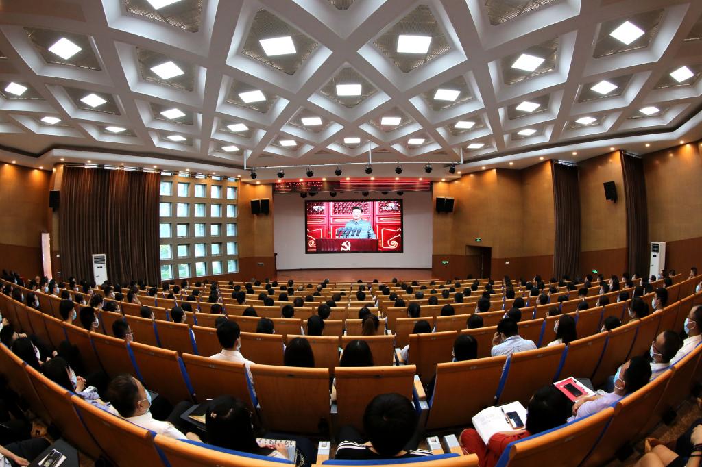 全體校領導、中層干部在圖書館學術報告廳集中收看