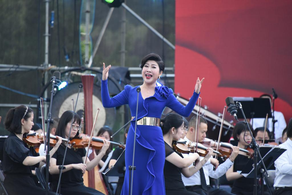 《走進新時代》《江山》等歌曲展現了在中國共產黨帶領下,人民安居樂業,國泰民安,幸福安康的繁榮景象。經典陜北民歌《東方紅》描繪了中國共產黨人開天辟地、敢為人先、堅定理想與百折不撓的奮斗精神,《唱支山歌給黨聽》唱出了對黨的無限深情。生動活潑的《青春圓舞曲》《燦爛的陽光下》,充滿家國情懷的《我的中國心》,激勵著青年一代揚帆起航,擔當起中華民族偉大復興的歷史使命。鏗鏘有力的詩歌朗誦《旗幟更鮮艷》,展現了中國共產黨團結帶領中國人民實現從站起來到富起來再到強起來的偉大飛躍,表達人民群眾對黨的無限熱愛。最后,臺上臺下合唱《沒有共產黨就沒有新中國》,將音樂會推向高潮。