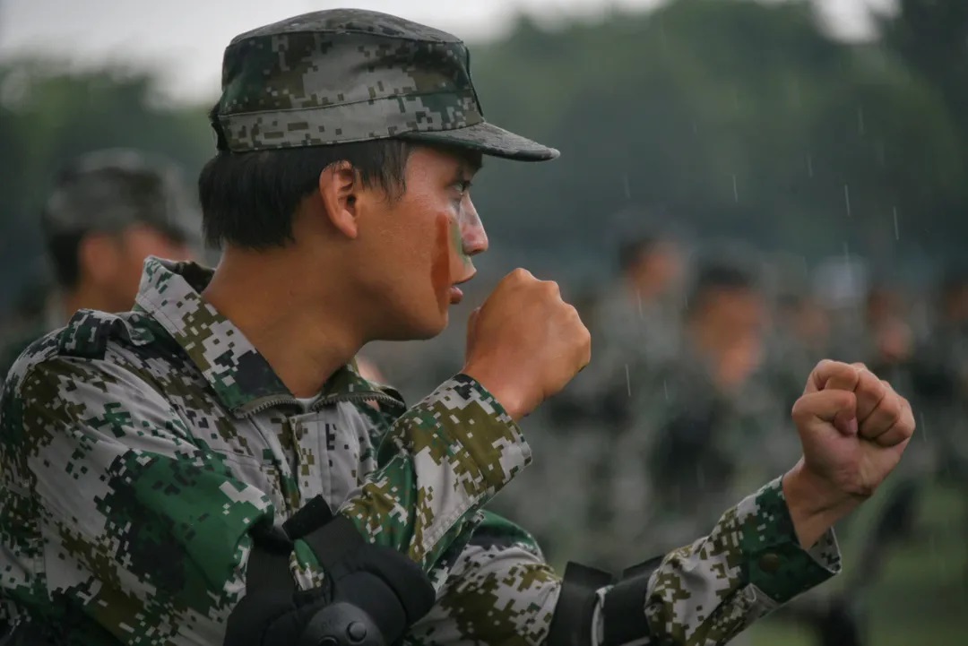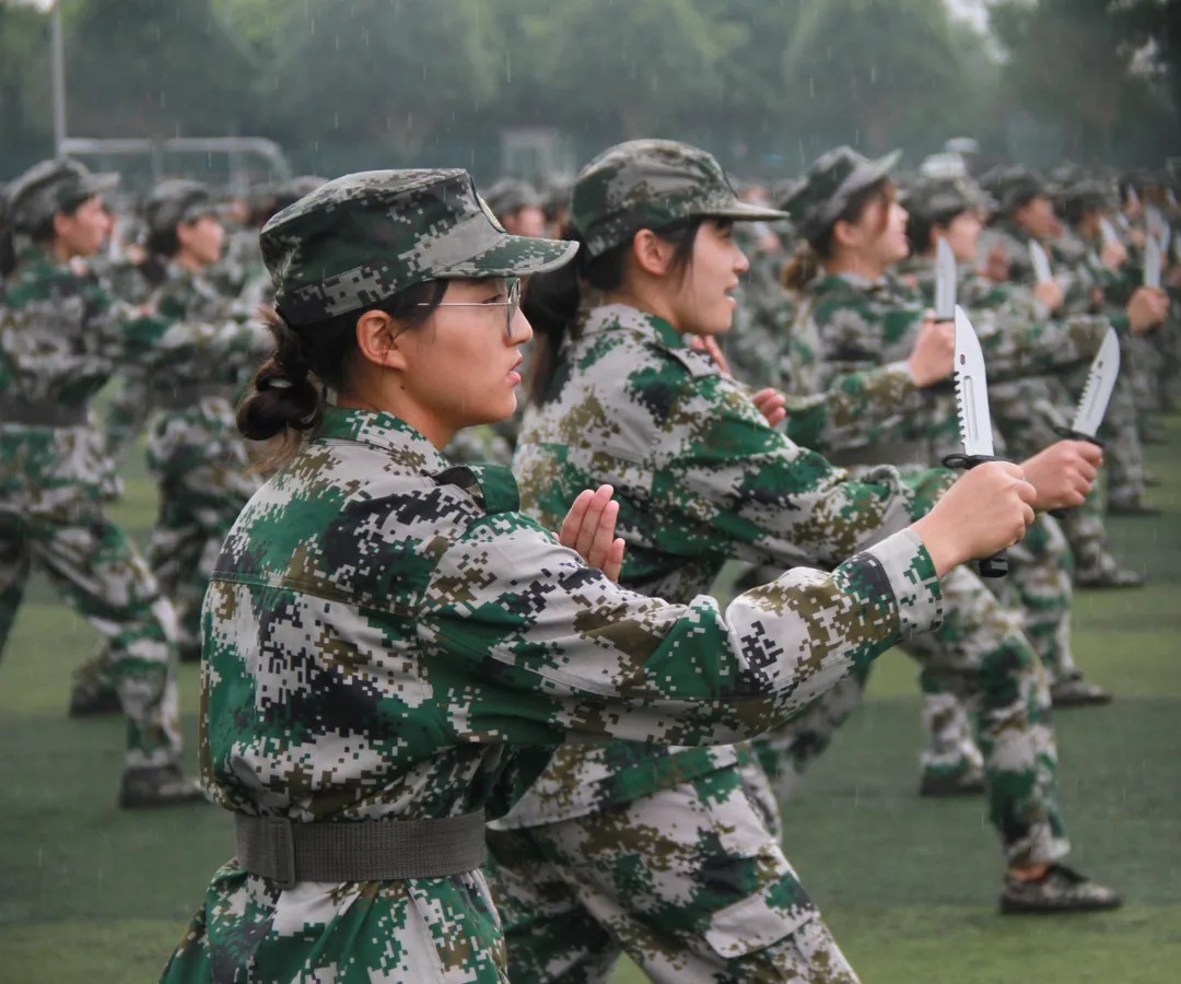 隨后進行了軍事技能表演。擒敵拳方隊、戰術方隊、匕首操方隊依次登場。整齊的動作,響亮的口號,無不彰顯著軍魂和同學們頑強的作風。