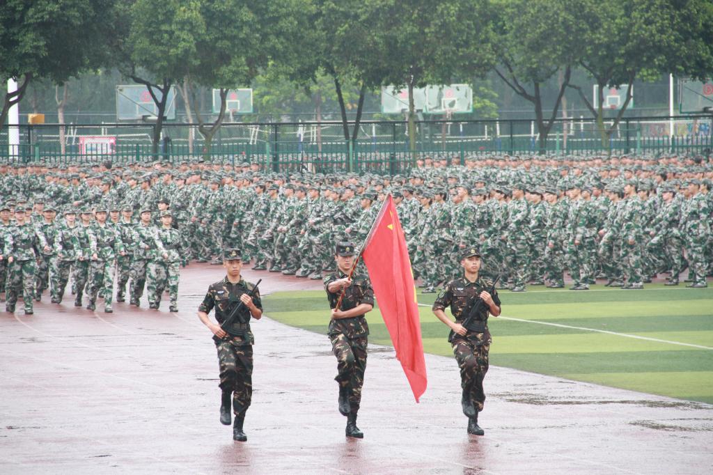 成都市新都區區委常委、人武部部長李恒上校,我校武裝部部長、2020級學生軍訓團團長鄧洪波,學生工作部部長、2020級學生軍訓團政委蒲勇,體育學院黨總支書記、2020級學生軍訓團副團長彭小華,教務處處長黃健全等出席大會。