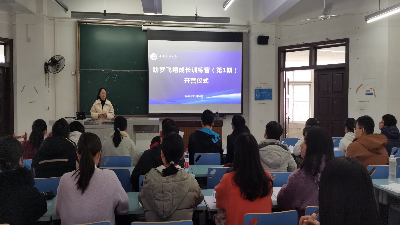 2020年11月26日下午16:00四川金強“助夢飛翔”成長訓練營開營儀式于思學樓B505順利舉行。出席本次活動的有黨委學生工作部副部長張浩、學生資助中心主任劉小萍、西南石油大學副教授舒小立及訓練營全體學員。活動由黨委學生工作部羅明輯老師主持。