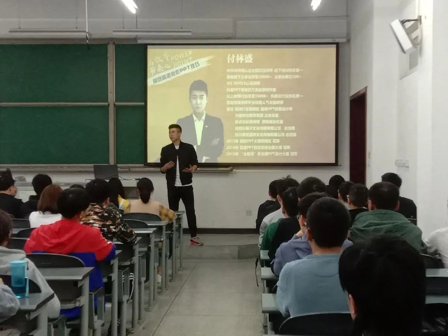 第二期訓練營以“PPT進階”為主題,通過講座、實踐兩個模塊開展。首場講座以主講嘉賓付林盛以“PPT與生活”揭開序幕。他講述自己了的大學生活,包括積極參與各項活動,踴躍參加各類比賽,在校期間擔任過兩年的學生會主席等。