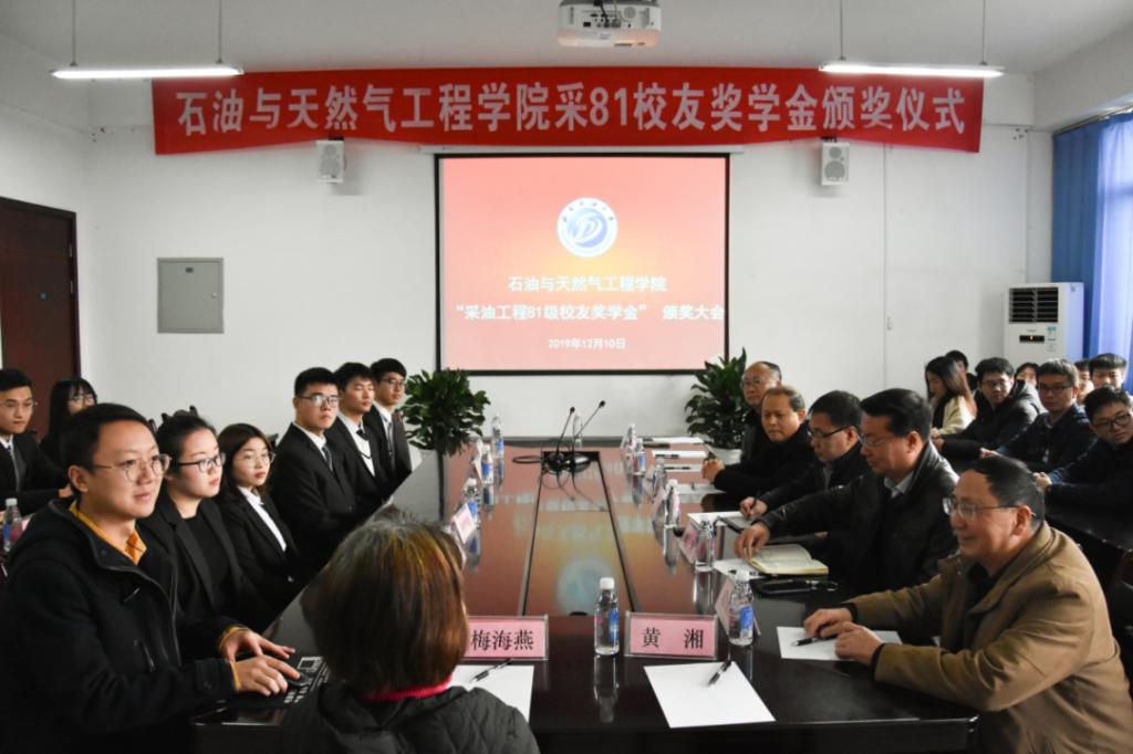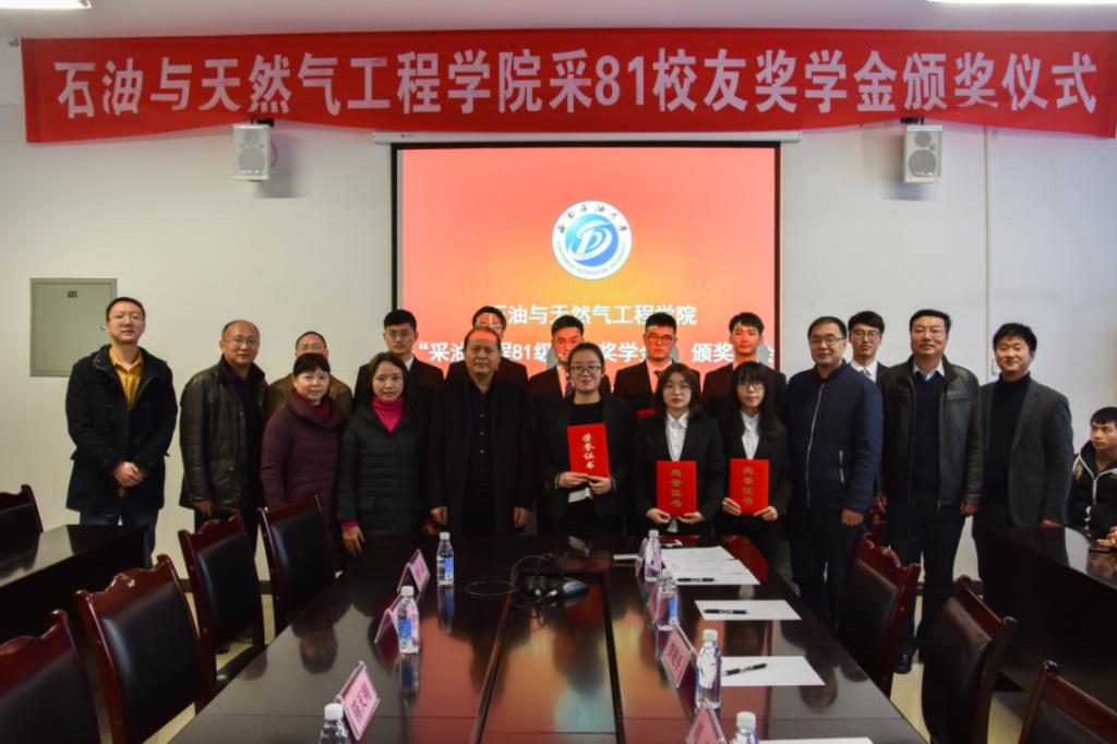 12月7日上午,石工院2019年“采81校友獎學(xué)金”頒獎儀式在明辨樓B519會議室舉行。教育發(fā)展基金會秘書長劉恒、石工院院長李曉平、人事處師資科科長楊明松、石工院黨委副書記、紀(jì)委書記姚利、石工院采油81級校友梅海燕、黃湘、段永剛以及研究生輔導(dǎo)員王茂興等出席頒獎儀式并為獲獎同學(xué)頒獎,大會由學(xué)工辦主任張繼主持,部分優(yōu)秀本科生、研究生代表參加。