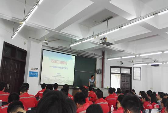 隨后,施老師又通過視頻、圖片展示的手段,為同學們生動形象地詳細講解了油氣成因、巖石儲層、流體性質及儲量計算等石油地質方面的各類基礎知識,并將勘探、測井、鉆井、開發、儲運一系列流程做了系統的歸納總結。
