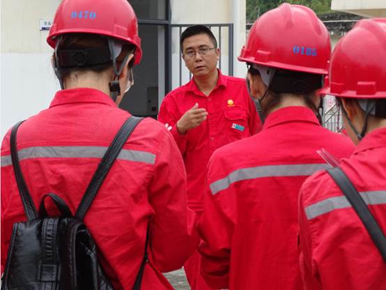 站長熊川為全體同學簡要解讀回收廠各項規章制度,講解了站場工藝流程、處理原理、設備選用原則、實際操作中需注意的地方等關鍵性問題。在脫水單元,他特別提到此處采用的方法是分子篩脫水,不同于其他站所選用的TEG(三甘醇)脫水,要求同學們綜合考慮工藝特點和作業任務,自主思索得出原因,以此來加深同學們的印象,達到高效學習的效果。隨后,蔣宏業老師結合《油氣儲運設備》、《化工分離基礎》兩門已修課程知識,具體介紹實際流程中各設備的組成及工作特點,有利于同學們整合理論學習知識,提升現場操作動手能力。