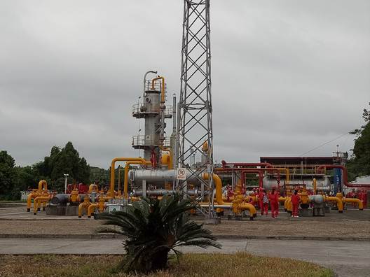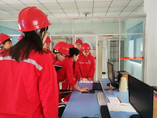 同學們在站場工藝區實地參觀