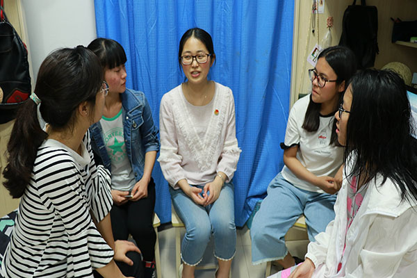 5月11日晚,項目小組會同學生第五黨支部優秀黨員在指導老師董曉琪的帶領下,深入石工院大一學生寢室,開展對口幫扶與理論宣講活動。