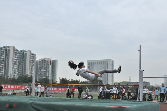 比賽伊始,經過幾輪預賽,王婧艷成功晉級,但隨著比賽的進行,橫桿被不斷提高,跳躍的難度不斷加大,比賽也顯得愈加激烈。助跑、起跳、空中過桿,翻轉落地,一氣呵成,王婧艷成功跳過。之后,她示意裁判組增加高度,要向校記錄發起挑戰。現場的氣氛頓時顯得緊張起來,在總結過前幾跳的經驗后,王婧艷不負眾望,背身一躍,順利過桿,西南石油大學女子跳高校紀律被成功打破。