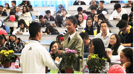 活動一開始,10位女生入場就座于第一排,隨后15位男生依次上臺,積極的和臺下的女生們展開交流。但不得不說,每一個男生的交流能力確實不一樣。有些男生能在臺上和女生們說的笑聲不斷,可謂是妙語連珠;但有些男生卻略顯羞澀。一個在場的觀眾,表示這個校園版的《非誠勿擾》增強人與人之間的興趣交流。