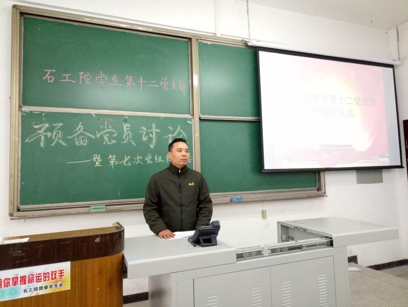 11月18日,石工院學生第十二黨支部第七次黨組織生活暨黨員發展大會在明辨樓C104順利召開。本次會議有三項主題內容:一是討論顧軍等十位同學發展問題,二是討論毛正林、楊海若同學的轉正問題,三是“永遠在路上”專題學習。