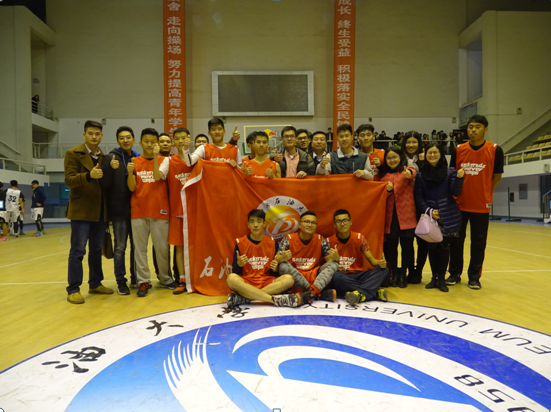 在下半場開賽前夕,石工院的隊員們相互鼓勵,相互支持,用更加沉穩的態度去面對接下來的比賽。下半場開始,盡管機電院奮勇發力,勢不可擋,然而石工院隊員們沉著應對,游刃有余,在同學們的激情吶喊下,他們憑借高超的技術與默契的配合反超對手并一路保持成績領先,最后以比分32:27打敗機電院,奪得本屆新生杯比賽的冠軍。