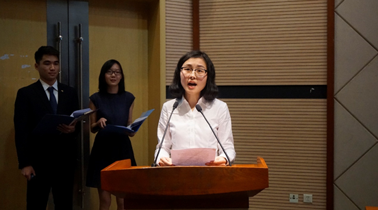之后,獲獎代表做了主題發言,李枚從石油工程設計大賽參賽準備、開展過程、心得體會做了經驗分享;李思儒利用英文演講的方式號召同學積極學習外語,提升英語聽說能力。
