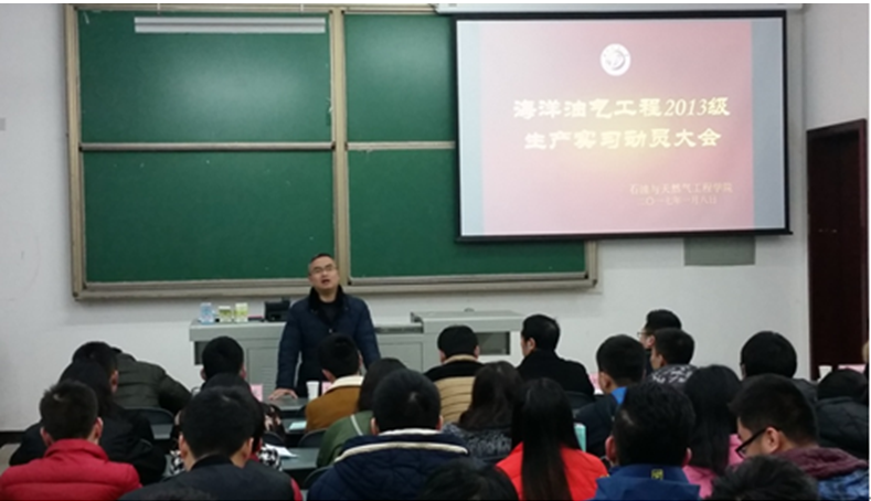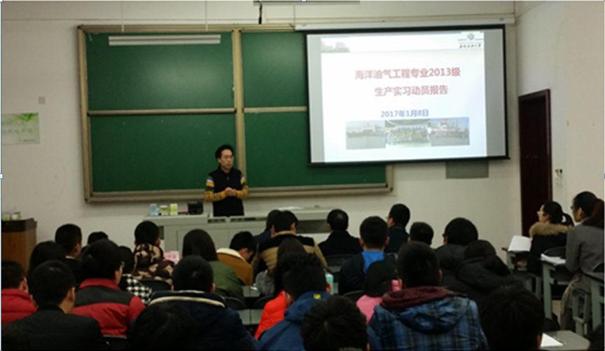 為加強學(xué)生對生產(chǎn)實習(xí)的認(rèn)識,確保各項實習(xí)任務(wù)的圓滿完成。2017年1月8日上午8:30,在明辨樓C104教室舉行了2013級海洋油氣工程專業(yè)生產(chǎn)實習(xí)動員大會,會議由生產(chǎn)實習(xí)隊長劉平禮老師主持。學(xué)院副院長梁光川到會做了動員講話,實習(xí)顧問楊志老師、帶隊老師劉理明、趙志紅、康露和輔導(dǎo)員董曉琪出席大會。