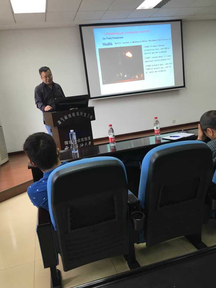 樊栓獅教授首先對天然氣水合物研究的重要性進行了闡述,提醒同學們一定要注意天然氣水合物對天然氣開采、運輸、使用過程中的不利影響。隨后樊教授對國內外天然氣水合物的研究現狀進行了論述分析,深入淺出的介紹了天然氣水合物研究的各個方面,并著重介紹了天然氣水合物研究的最新進展。在講座的最后,樊教授語重心長地教導同學們要努力學習、刻苦鉆研、醉心學術,擁有使命感與責任感,為石油天然氣的學術研究做出貢獻。