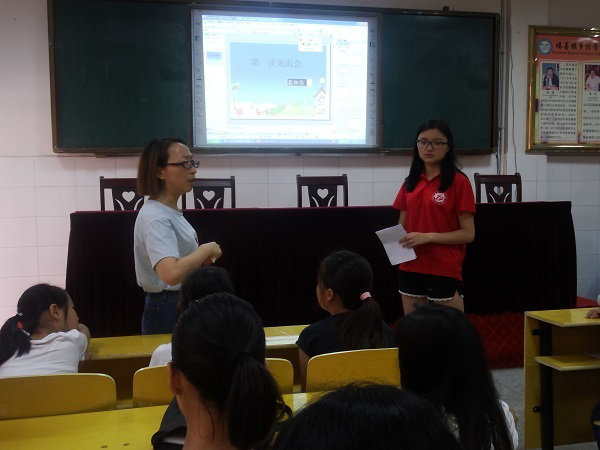 上午九點,福善學校老師唐茂華進行了致辭,強調了紀律與尊重。致辭完畢,實踐隊隊員們與小朋友舉行了第一次見面會。隊員們依次進行自我介紹。隨后,小朋友們以游戲的方式進行自我介紹,氣氛因此變得活躍起來。就這樣,在歡樂的氛圍中,小朋友們記住了彼此的名字,實踐隊隊員與小朋友們的關系更近一步。