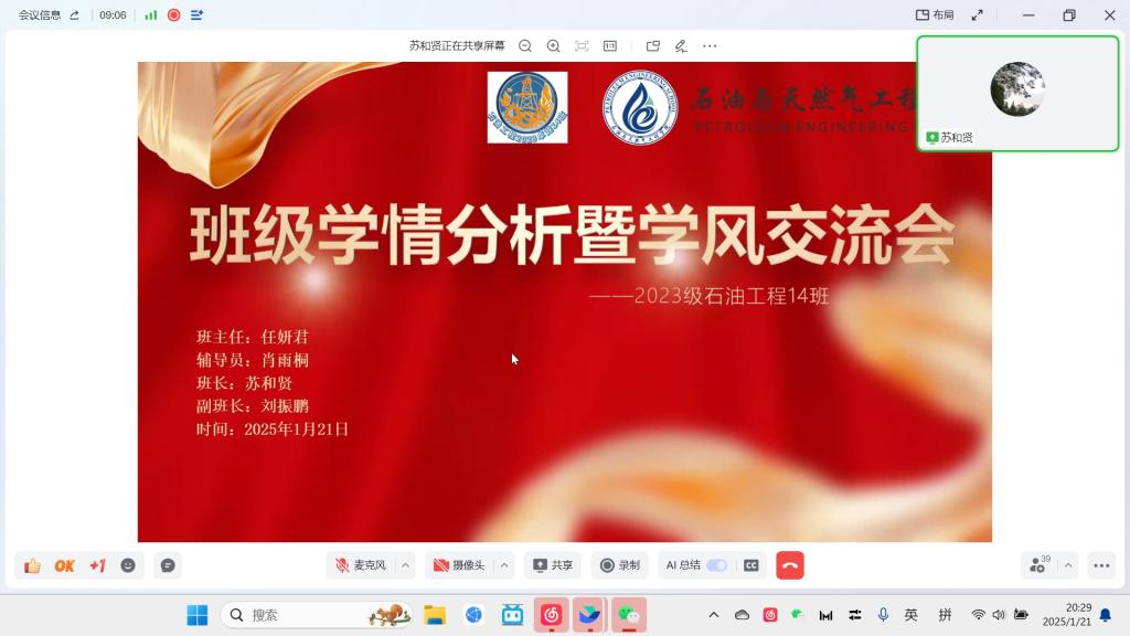 石油工程2021級(jí)(創(chuàng)新)2班班主任由李穎副教授擔(dān)任。她提醒學(xué)生在學(xué)習(xí)課程的同時(shí)要積極推進(jìn)畢業(yè)論文工作,主動(dòng)與畢業(yè)設(shè)計(jì)指導(dǎo)老師溝通,合理協(xié)調(diào)考研復(fù)試和畢業(yè)設(shè)計(jì)時(shí)間。如果復(fù)試獲得通過,應(yīng)爭(zhēng)取提前進(jìn)入導(dǎo)師的課題組;對(duì)于準(zhǔn)備就業(yè)的同學(xué),要密切關(guān)注春招,嘗試多元化就業(yè)。學(xué)習(xí)委員通報(bào)了上學(xué)期課程考試情況,表示下學(xué)期將完善學(xué)習(xí)小組制度。