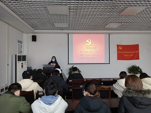 大會開始,全體人員奏唱國歌并行注目禮,大會氣氛嚴肅而又認真。大會的主要議題是討論關于接受王碩、莊紅展、任官寶、劉芳蘭、孫耀璽、張永虎、何文靜、何妍、李楊凡、邵忠偉、舒曉燕共11名入黨積極分子轉為預備黨員。每位同志都依次匯報自己對黨的認識以及展示個人履歷和現實表現,后由介紹人對各自培養的同志進行全面客觀的評價,提出了對每位同志的建議與要求。最后進行正式黨員進行民主評議,該評議為不記名投票,所有同志按照規定程序嚴格執行,11名擬發展黨員都全票通過。之后,預備黨員們進行了莊嚴而正式的入黨宣誓。