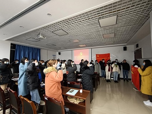 大會第一項,由申請人匯報自己在預備期間的表現,匯報預備期一年中思想、學習、工作以及生活上的感悟、收獲、態度及表現等情況,并表明了自己已經做好接受黨的考查的準備。隨后,9位同志轉正介紹人分別對各自申請人的轉正發表了意見。經舉手表決,與會正式黨員一致同意9位同志按期轉為中共正式黨員。投票結束后,所有申請轉正的預備黨員同志在安金彪同志的帶領下進行了莊嚴肅穆的入黨宣誓。