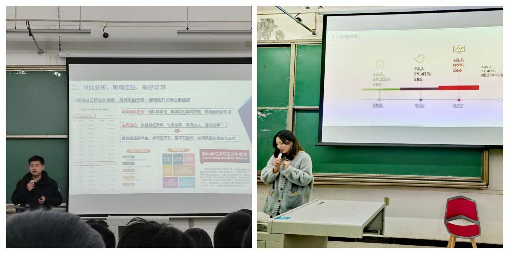 針對碩博士研究生,輔導員老師在年級大會上指出,研究生同學要積極參與各項科研訓練,讓自身科研能力得到不斷提升,同時也一定要堅守學術誠信底線;對于有讀博想法的同學一定要做好信息搜集并認真備考,對于想就業的研究生同學一定要多方了解就業信息,立志到祖國最需要的地方去。