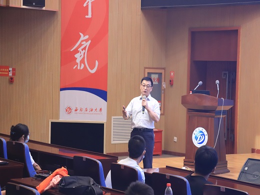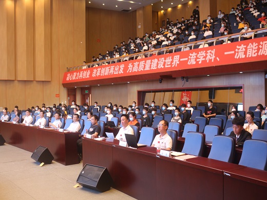 中場休息后,學(xué)院教授委員會主任張哨楠老師為同學(xué)們帶來新生入學(xué)第一大課堂。他提到,如今國家乃至世界正面臨著能源短缺的問題,同學(xué)們應(yīng)深刻認(rèn)識到國家需要我們,民族需要我們,作為石油人、地科人,我們應(yīng)該當(dāng)仁不讓,擔(dān)當(dāng)時代使命,挑起社會責(zé)任,為實現(xiàn)中華民族偉大復(fù)興而不懈奮斗!