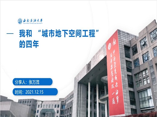 2021年12月15日,我校2020屆優秀畢業生張萬茂,通過騰訊會議對2021級城市地下空間工程專業全體同學,開展了一堂生動的經驗分享。