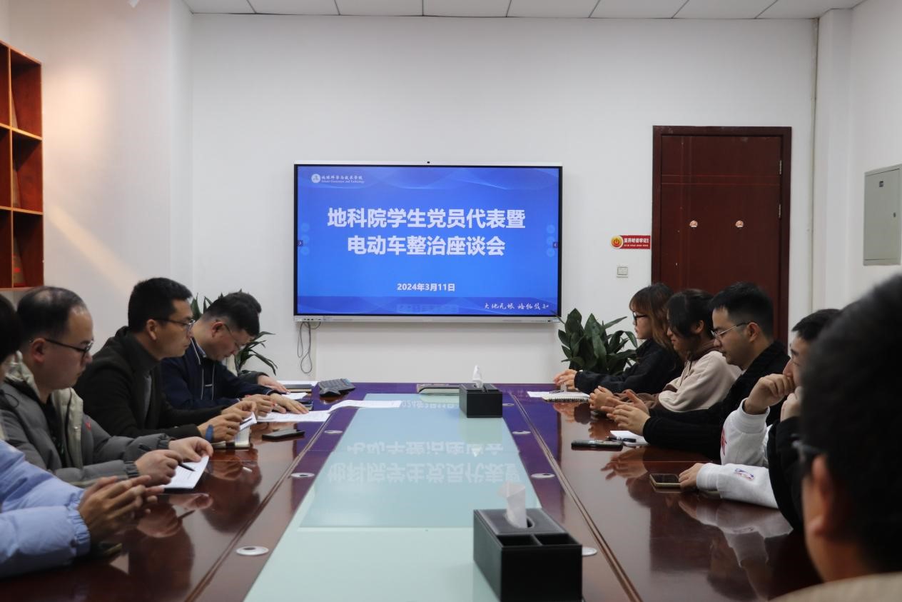 為推進校園電動車專項治理,3月11日晚,地科院召開學生骨干電動車專項治理工作座談會。學院黨委副書記張勇、學院黨委組織員李明科、輔導員代表、學院本碩博學生代表參加本次座談會。
