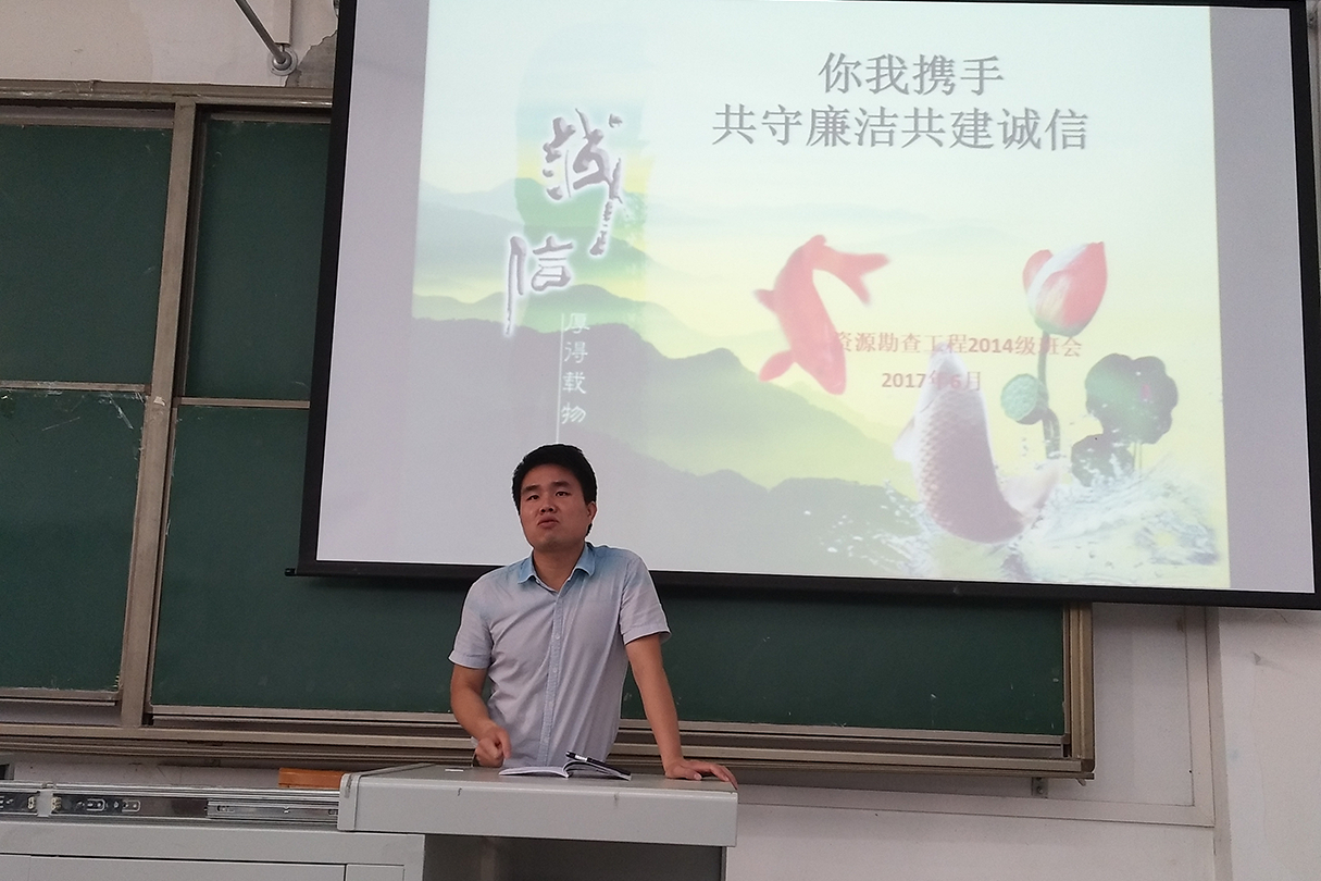 為深入貫徹落實全國高校思想政治工作會議精神和學校全面深化改革要求,進一步增強同學們的誠信意識,資源勘查工程2014級同學積極響應號召,于6月5日下午在明辨樓C205成功召開了“你我攜手,共建誠信”主題班會,輔導員李龍珂也參加了此次班會。