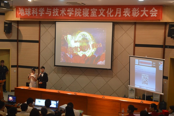 滿載著累累碩果,歷時一個半月的地科院寢室文化月活動圓滿落幕。為表彰本次活動表現突出的寢室,5月18日,地科院在思學樓A114舉辦了表彰大會。后勤服務總公司黨委書記趙永清、學生工作部副部長曾有為、地科院黨委書記朱江、黨委副書記范起東、12棟學生宿舍管理員粟淑芳以及班級學業導師等參加了此次表彰大會。