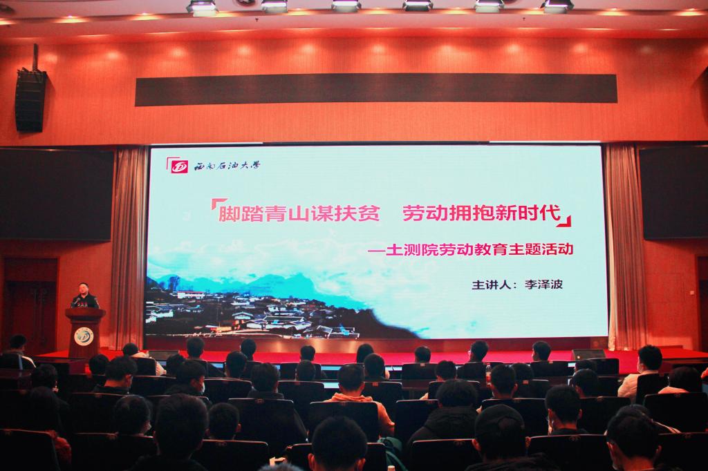 為更好地培養(yǎng)同學(xué)們積極勞動意識,樹立勞動精神、勞模精神、工匠精神,加快構(gòu)建德、智、體、美、勞全面培養(yǎng)的教育體系,土測院于11月25日在圖書館報告廳開展以“腳踏青山謀扶貧,勞動擁抱新時代”為主題的勞動教育主題講座。此講座特邀涼山州金陽縣委副書記、學(xué)校保衛(wèi)處副處長李澤波主講,土測院黨委副書記周永華,輔導(dǎo)員冉玉嘉、劉欣芮、孫明遠(yuǎn)以及各年級學(xué)生代表參加了本次講座。