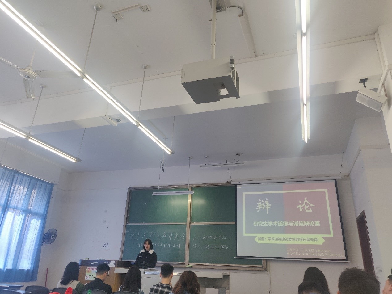 研究生學術道德與誠信辯論賽在本系列活動中頗具特色。正反雙方就“學術誠信要靠自律還是他律”這一辯題展開探討,博古通今,妙語連珠,以寓教于樂的方式幫助同學們牢固樹立學術誠信觀念,內化于心,外化于行,做一名實事求是、誠信科研的合格的研究生。