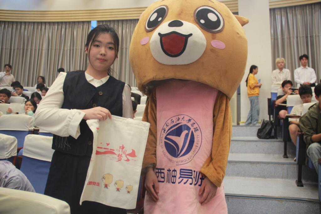 在活動(dòng)中場(chǎng)休息,進(jìn)行了現(xiàn)場(chǎng)掃碼抽獎(jiǎng)互動(dòng)活動(dòng),抽取了8名幸運(yùn)觀眾,由穿著易班熊玩偶服的工作人員親自送到手中,現(xiàn)場(chǎng)氣氛一度達(dá)到高潮。