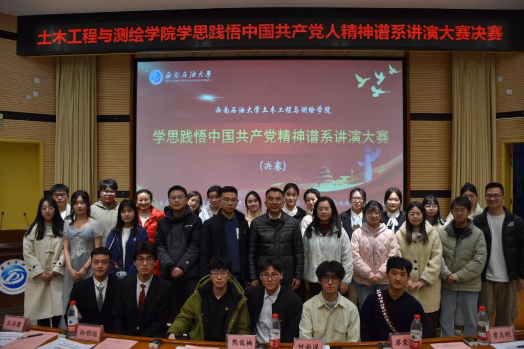 3月9日晚19:30,西南石油大學首屆“學思踐悟”中國共產黨人精神譜系講演大賽土木工程與測繪學院決賽在思學樓A114順利舉辦。出席活動的評委有學院黨委書記熊俊楠老師,黨委副書記、紀委書記何雨洋老師以及各年級輔導員。